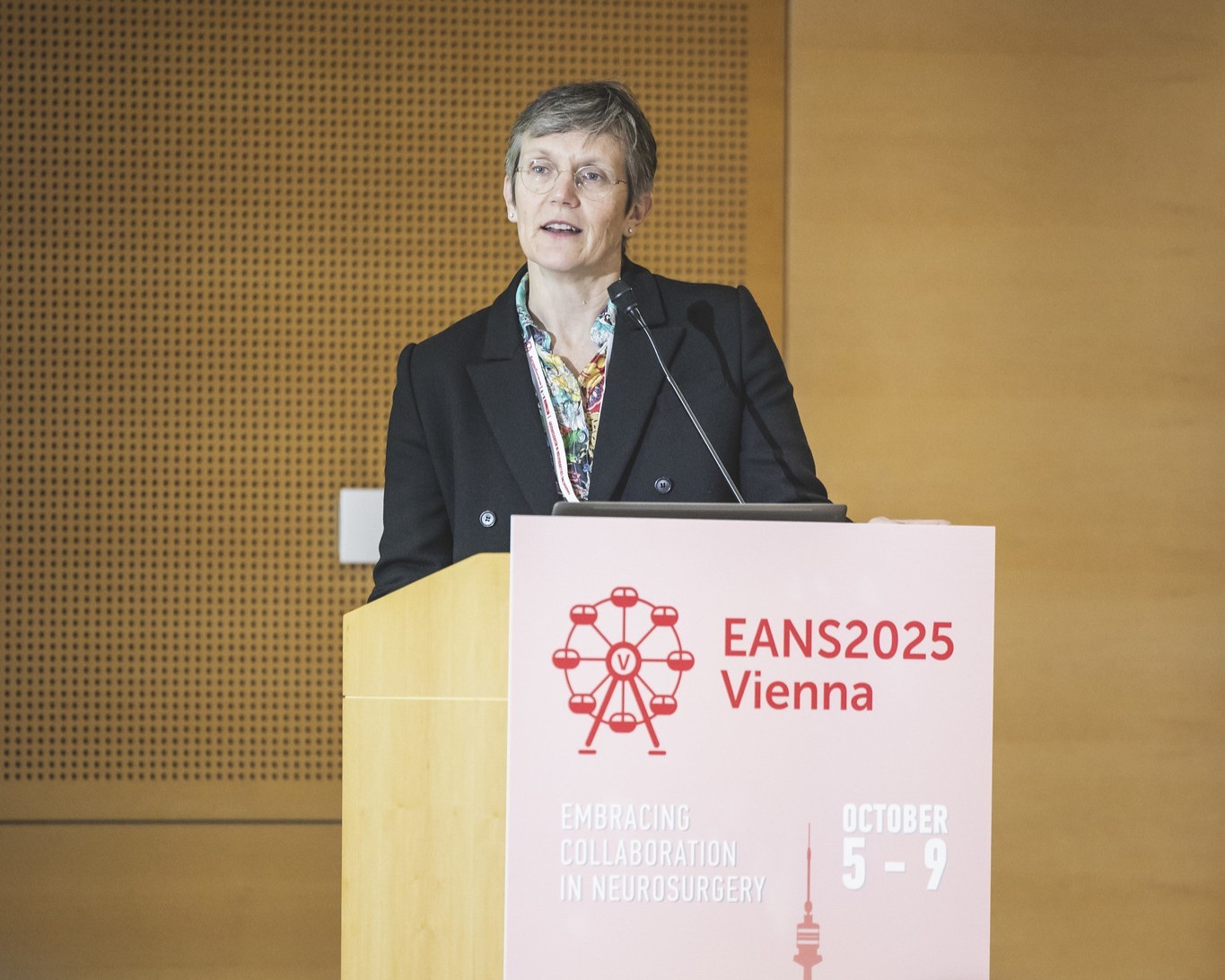 Professor Lindy Jeffree, Chair of the Brain Cancer Australia National Consortium and Director of Neurosurgery at The Alfred, Melbourne speaking at the European Association of Neurosurgical Societies Congress in Vienna.